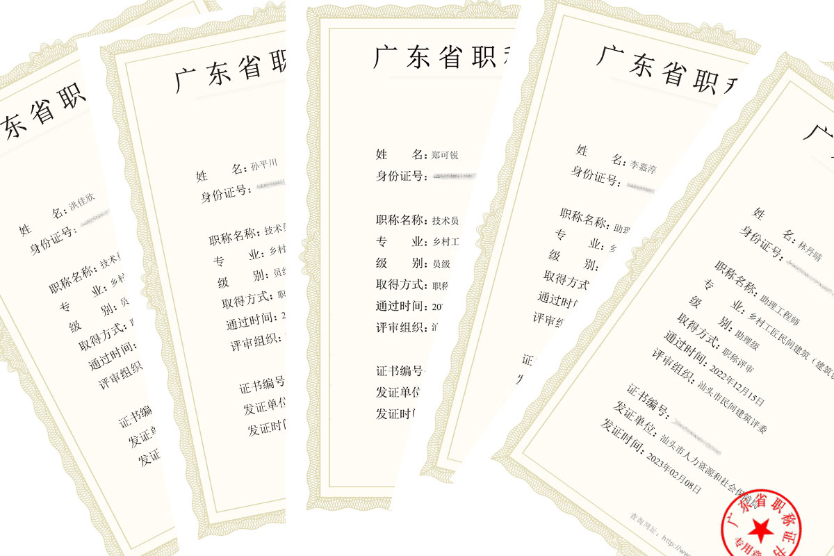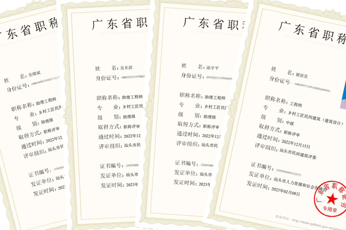在今年的乡村工匠专业人才评审中,潮汕水电共有9名职工顺利通过评审委员会的评审及认定。其中,获得中级工程师职称1人,助理工程师职称5人,技术员职称3人。