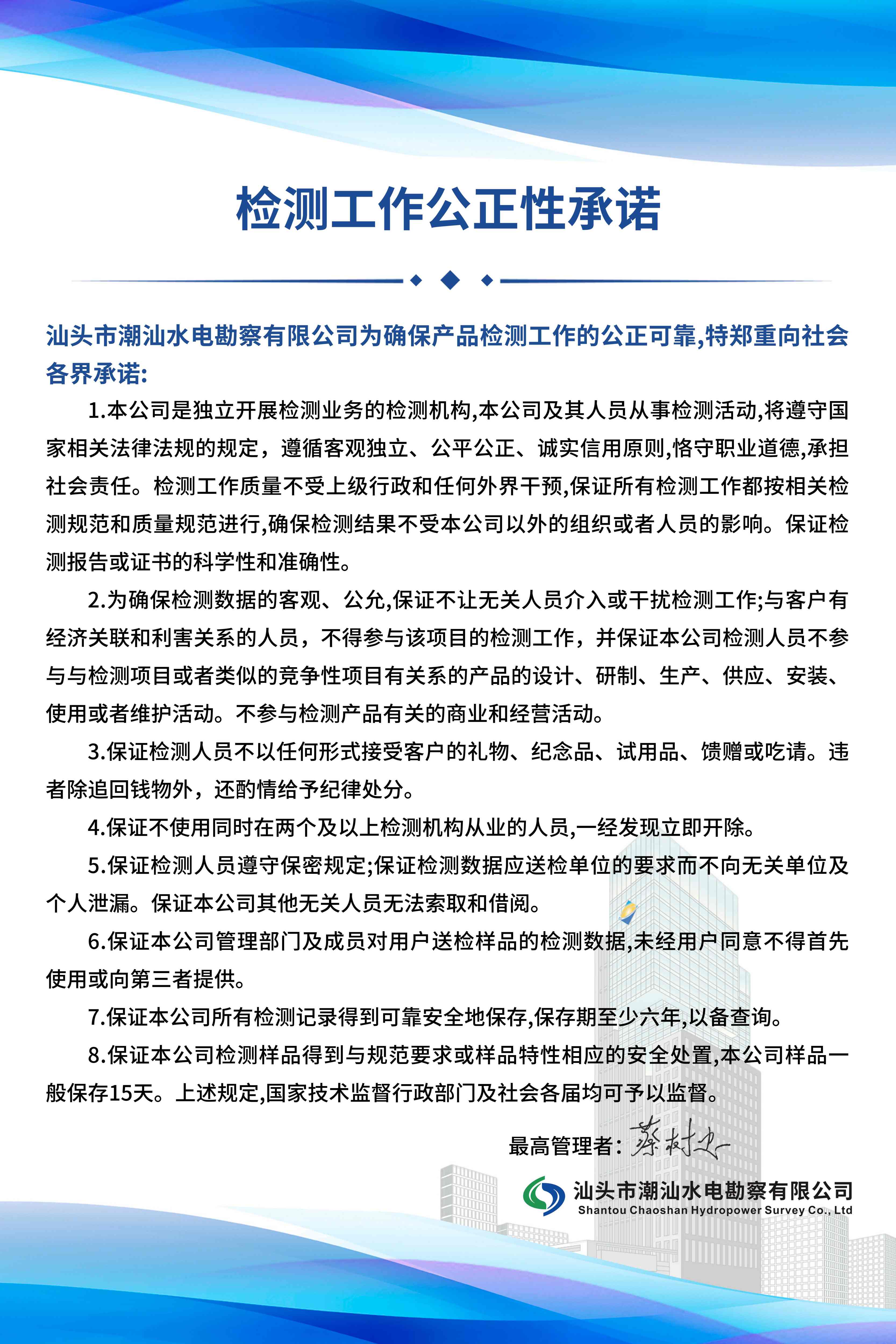 检测工作公正性承诺